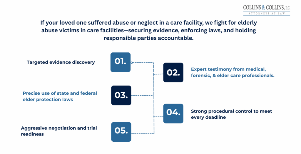 At Collins & Collins, P.C., our experienced New Mexico elder abuse attorneys help families protect their loved ones and pursue justice against negligent nursing homes, hospitals, and long-term care facilities. We provide clear answers, decisive action, and compassionate guidance every step of the way.